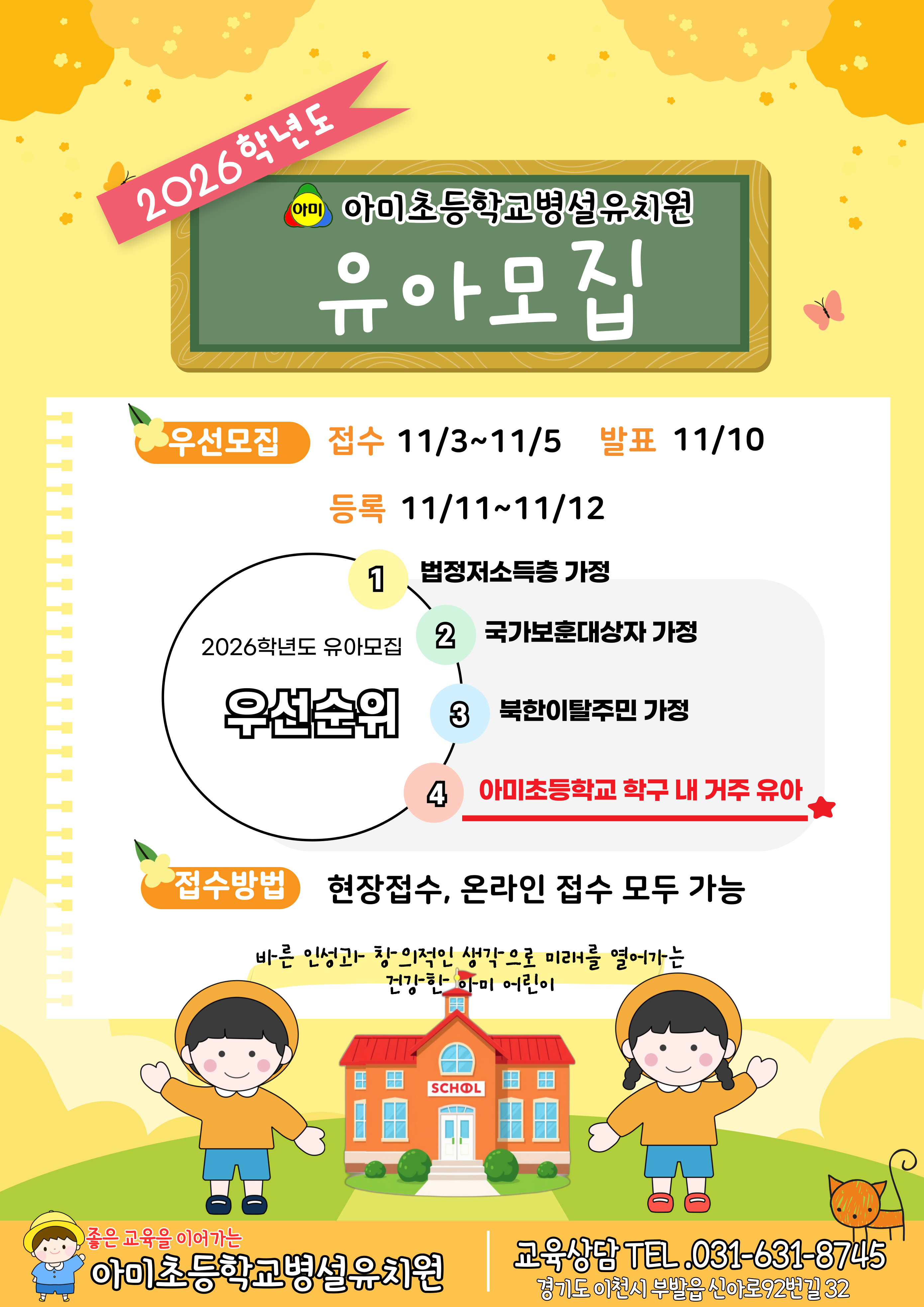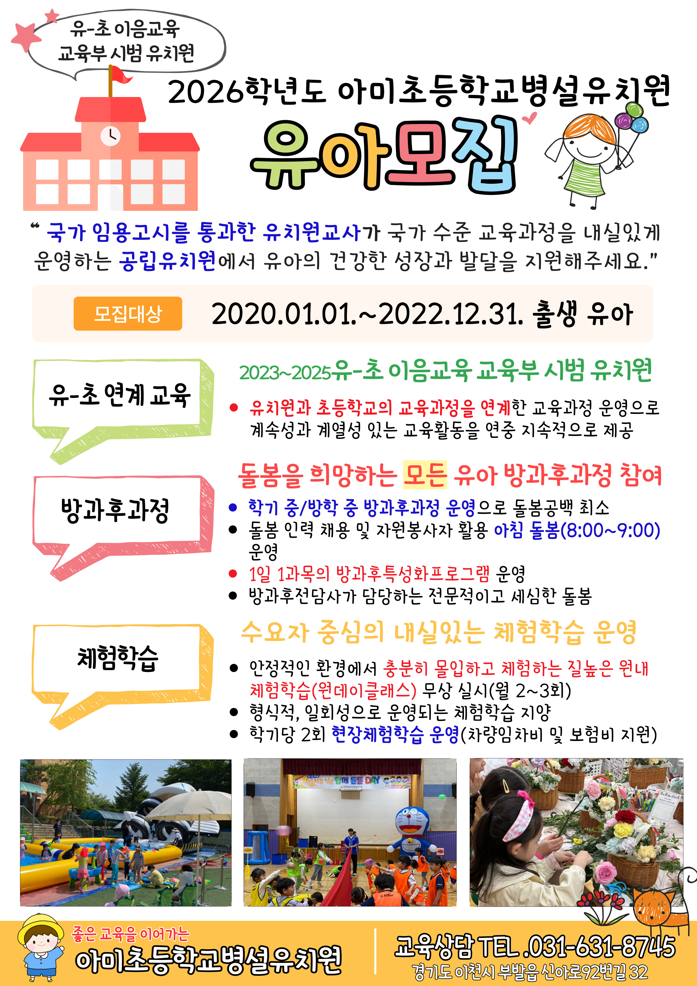 2026학년도 아미초등학교병설유치원 신입 유아 모집 안내