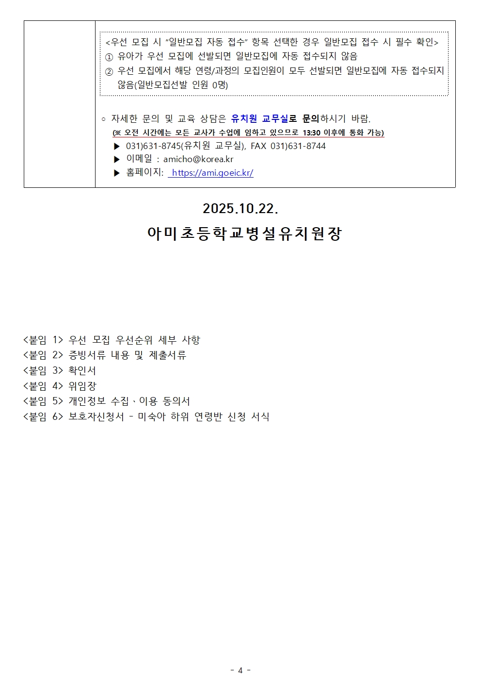 2026학년도 아미초등학교병설유치원 유아모집 우선모집 세부사항 및 제출 서류 서식.pdf